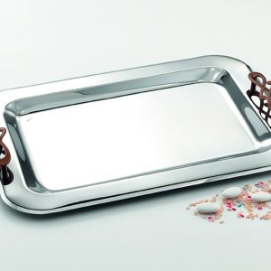 Ανοξείδωτος ορθογώνιος δίσκος γάμου και σερβιρίσματος με επίχρυσο ή μπρονζέ  χερούλι