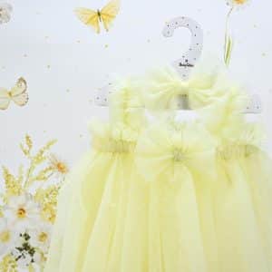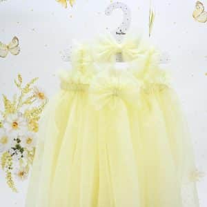 Σε δροσερή λεμονί απόχρωση, με τούλι διακοσμημένο με λευκά πουά, χαρίζει παιχνιδιάρικη κομψότητα και ρομαντική διάθεση.