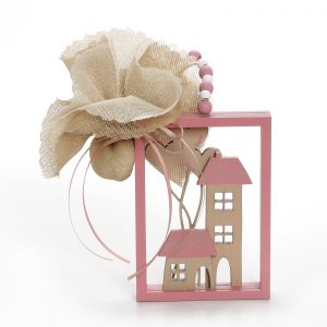 Μπομπονιέρα βάπτισης Καδράκι ξύλινο τρισδιάστατο ροζ ΣΠΙΤΑΚΙ ΜΕ ΚΑΡΔΙΕΣ.