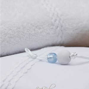 Λαδόπανο από τη Lina Baby σε λευκό χρώμα με διακόσμηση από κυματιστή τρέσα και σιελ χάντρα.  Το σετ περιλαμβάνει: