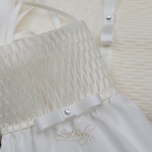 Λαδόπανο από τη Lina Baby σε εκρού χρώμα με φάσα από ύφασμα κορδονέτο, γκρο κορδέλα και στρας.