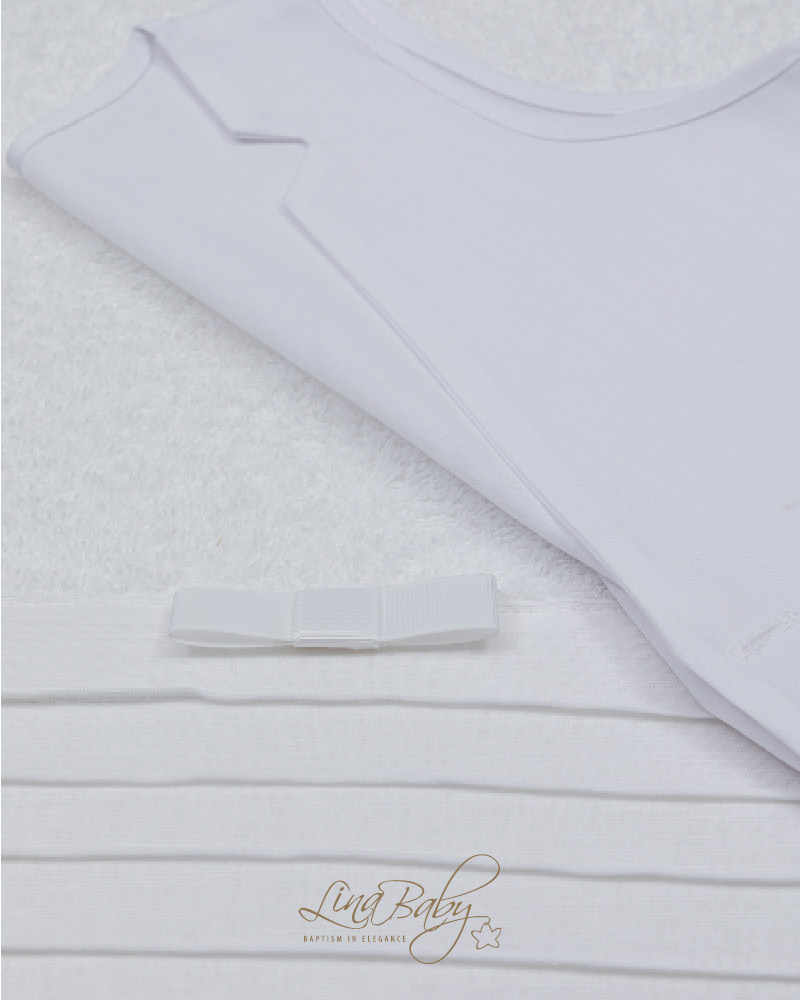 Βαμβακερό σετ λαδόπανου “Nervir” από τη Lina Baby σε εκρού, με βαμβακερή φάσα υφάσματος και διακοσμητικά νερβίρ. Το σετ περιλαμβάνει σεντονάκι, εσώρουχα, πετσέτα μεγάλη, μικρή πετσέτα για τον ιερέα και διαθέτει πιστοποίηση “OEKO-TEX STANDARD 100”: