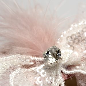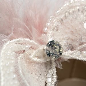 Μπαλαρίνα αγκαλιάς από dusty pink δέρμα και κεντημένο διακοσμητικό με παγέτες, στρας και ροζ φτερά.