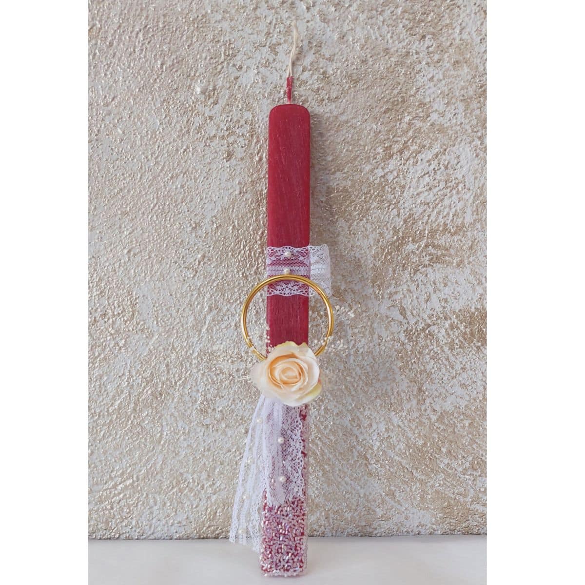Πασχαλινή Λαμπάδα με “Λουλούδι και Κρίκο” αρωματική μπορντώ
