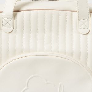 Ευρύχωρη τσάντα μητρότητας για να αποθηκεύετε τα απαραίτητα είδη για το μωρό. Με πολυδερματίνη εξωτερικά. Με αποσπώμενα λουράκια και με μακρύ αποσπώμενο λουράκι. Λειτουργική τσέπη μπροστά. Θήκη για πιπίλα εσωτερικά.